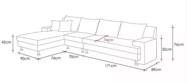 L 型沙发较长的那部分我们称之为贵妃榻。这类沙发一般适合较大的客厅空间,其中间(70cm左右)的小沙发可以实现累加的功能,从而达到一定的长度。