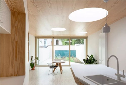 设计师在长条形状的房子内插入了一个三角形设计