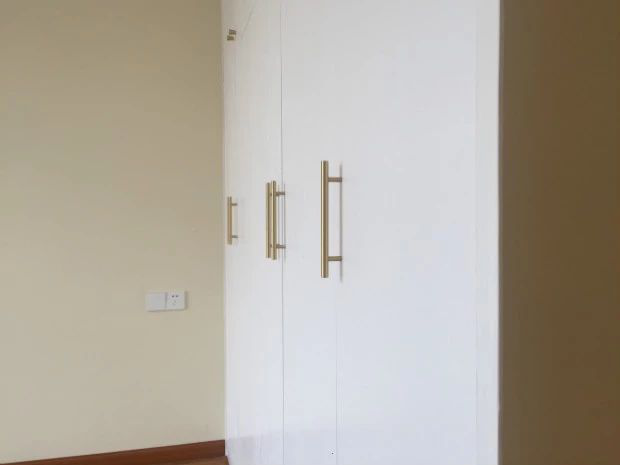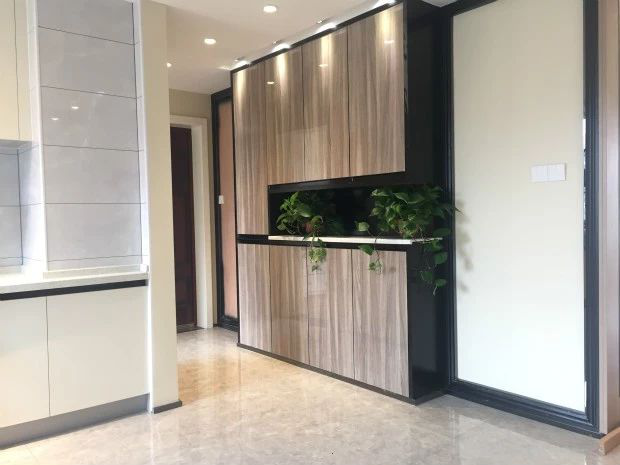 木柜整洁大方,近看以及用手摸未发现划痕迹象,木门和柜门开关未见异常。