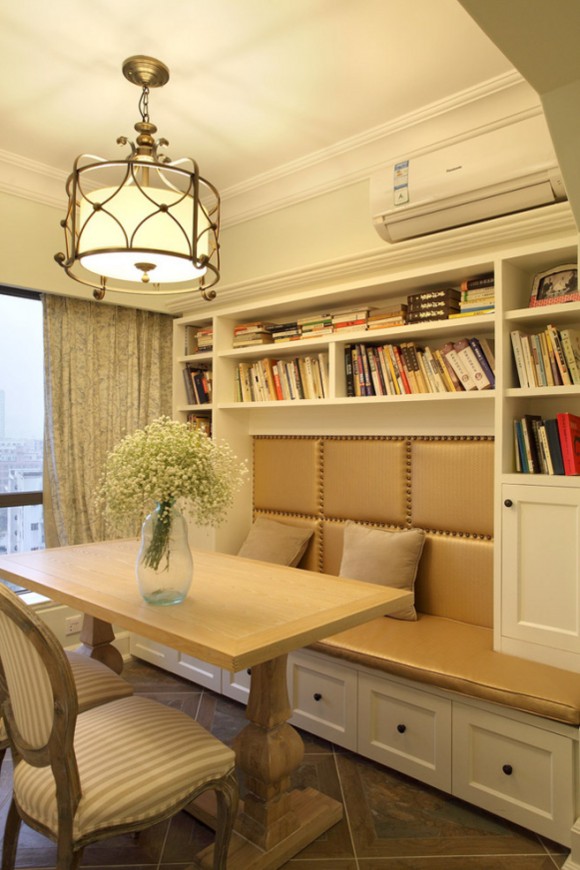 组合式书柜可以给书房空间带来不少的活动空间,给人落落大方、干净利落的感觉,简洁的风格会令你心境和思绪都更轻快些;同时编辑个人不怎么喜欢柜门,因为拿书不方便,像多宝格和开放式书柜这样的设计,都会为读写环境提供更多的便利和保障。