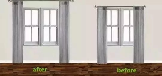 ● 拔高窗帘杆的高度:上至天花板、下至地板的窗帘自带延伸效果,视觉上制造了一种更大的空间感。不信看下图是不是感觉左边的窗户更大?