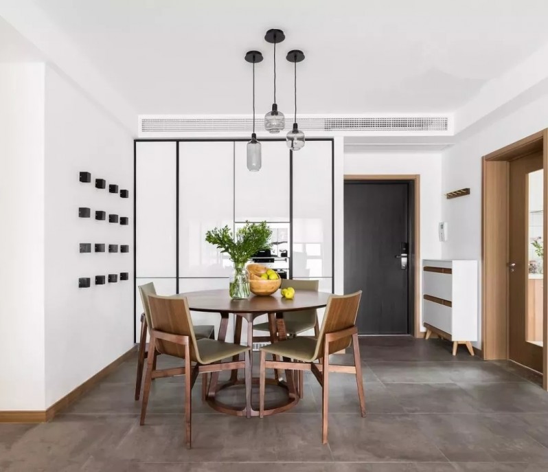 内嵌式设计能充分利用墙体空间的面积。比如将柜子、冰箱等嵌入墙体,你会发现嵌入式的设计,让原本两三件家具功能合并同类项,不仅空间节省了,而且可以让杂乱的场景轻松隐身。