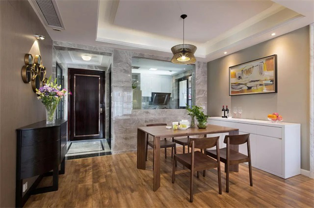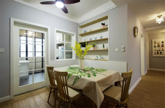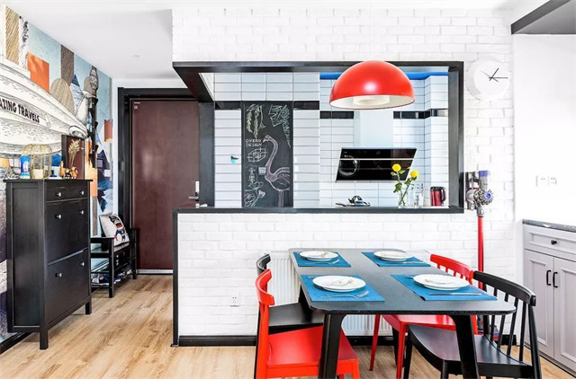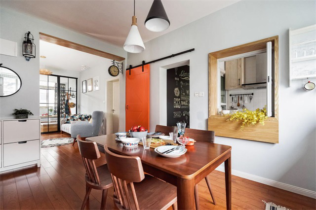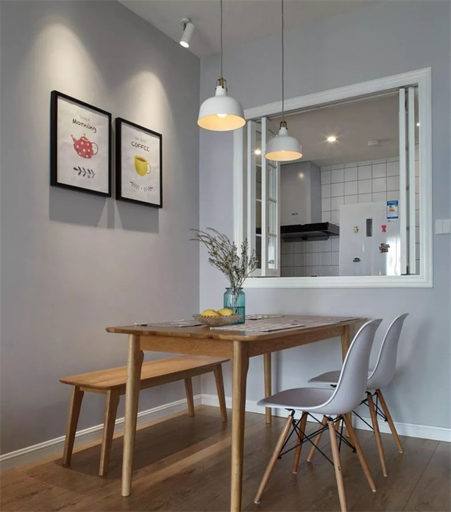 有些户型厨房就在餐厅隔壁,但厨房门就是在另外一边,这样每次烧菜上菜都要绕一圈出来,虽然也没多远,但动线总是不够顺。如果在餐厅和厨房之间的隔墙上开个窗,就解决了传菜问题,同时兼得采光等其他好处。