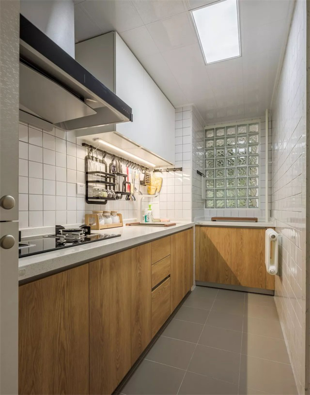 ▲ 厨房在户型中间,没有窗户,在一端开个洞用玻璃砖替换