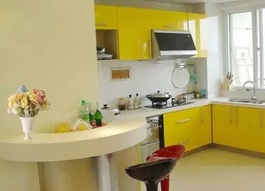 应选用防火、防水材料制作台面。若做橱柜,最好用成品。台面的高度应以家里最常做饭的人的身高为依据来确定。