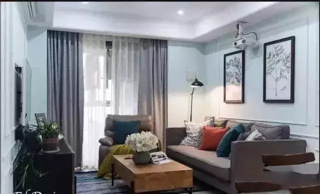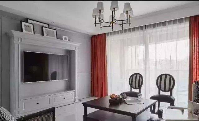 小美风格里头的双色跳跃颜色窗帘,就是为了打破美式风格的中规中矩,让空间多一点活力