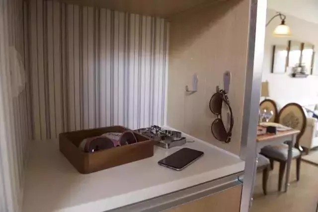 一个很小却很贴心的细节。当你手拿东西不想放地上而又要掏钥匙或按密码的时候,很实用是不是。台面内侧的钥匙挂钩设计,方便出入时的钥匙摆放,钥匙拿没拿一目了然。