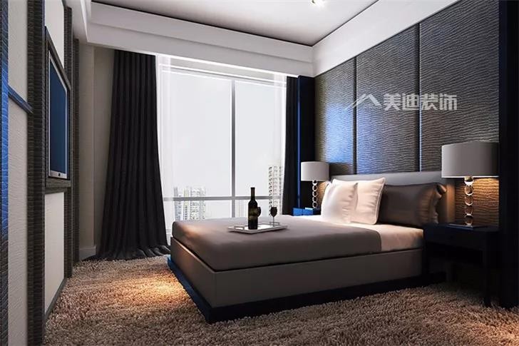 如果觉得目前家庭人员构成比较简单,不会妨碍到个人隐私的话,也可以用窗帘、玻璃材质来代替卧室门的功能,让原本有限的空间显得更大。