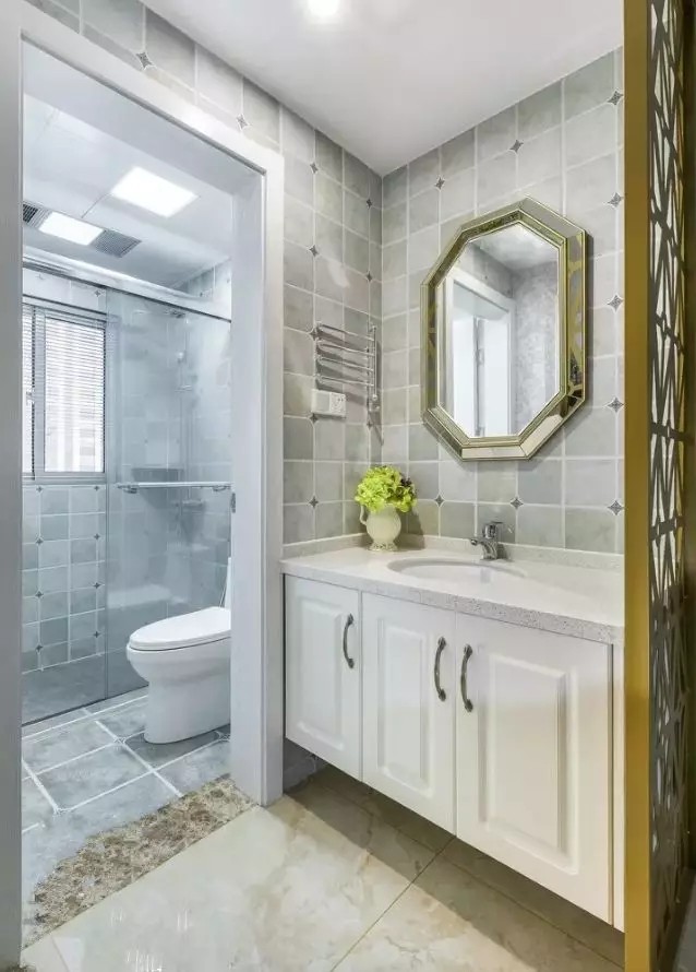 卫生间小就可以直接划分为淋浴、马桶、洗手台三个区域,择合适的摆放位置,不仅进出方便,还能增强空间感。