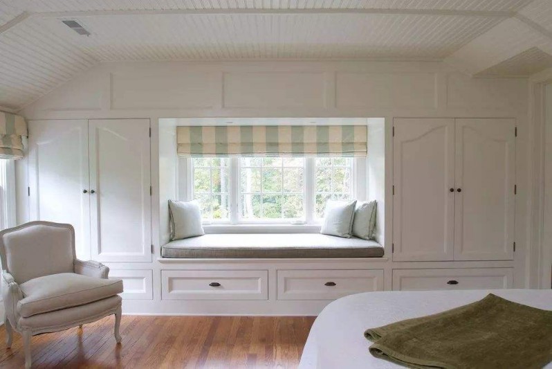 但如果用厚实的布艺窗帘,会让房间变得黑压压,影响居住者的心情,所以建议在正常遮光窗帘的基础上,多加一层轻薄透气防UV的纱帘。