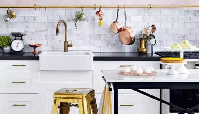 ▲用窗帘杆和支架在墙上DIY一个锅碗轨道,可以悬挂各类厨具,干净又方便拿取,长长的一段轨道容量也相当可观,裸露的金属管带着复古工业风的气息,成了厨房装饰的一大亮点,算是一种非常优雅的厨房收纳方案。