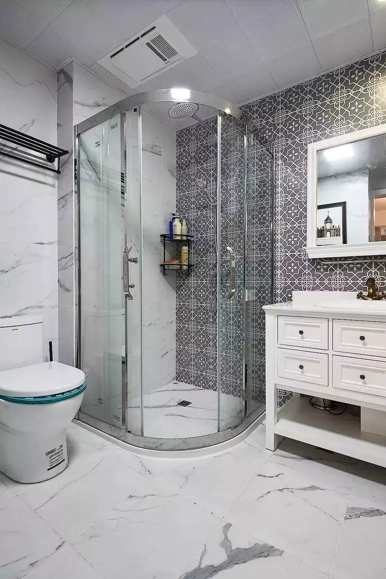 弧形的卫生间隔断,是个比较节省空间的淋浴房,同时这样圆弧处理的隔断又能避免空间形成一个尖锐的棱角。