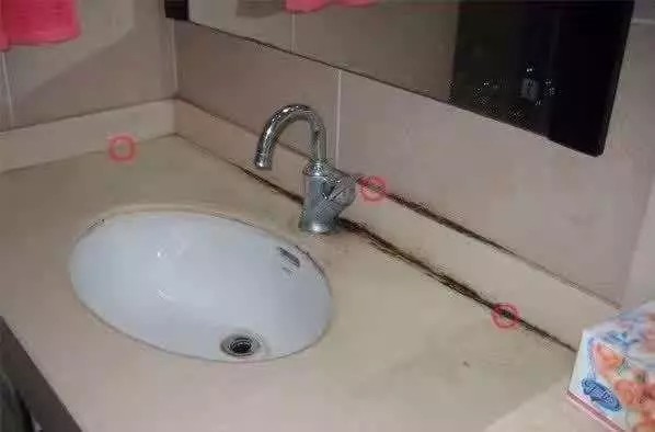 5.每个人家里的厨房和卫生间都能用到玻璃胶,玻璃胶得买瓷白玻璃胶或结构胶,不然用了不久后就像下图这样黑掉,那就麻烦了。