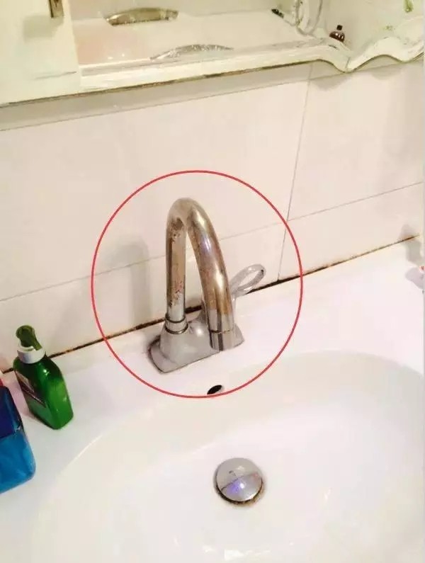 2、家里厨房、卫生间、阳台只要有用到热水的水龙头,一定不能贪便宜,水龙头一定要买铜质的,不然没用多久就会像下图一样脱落表层,一旦生锈就不好看了。