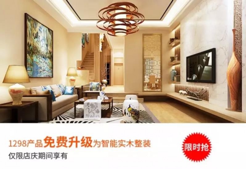 原价1700元/平米,店庆推广价1298元/平米,全系墅装主材+全系进口基材+全系生态实木免费升级+全房品牌家电大赠送+全房品牌家具大赠送+智能设备免费送。