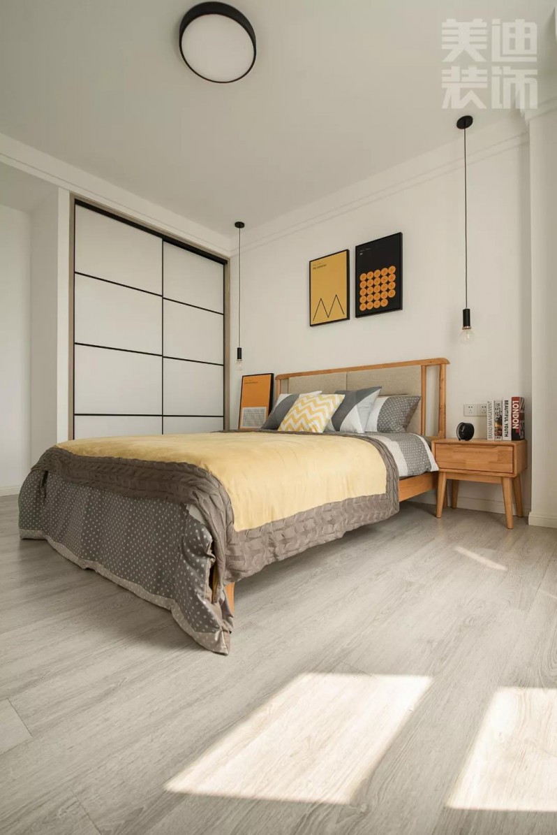 次卧空间不大,墙壁和天花板刷白,让室内显得明亮通透,原木地板更有质感。