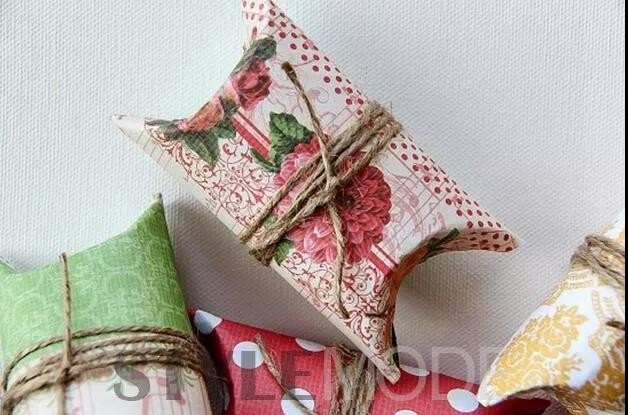 接着两端开口处往里按压,形成闭合的礼物盒形状,最后稍压扁,细麻绳捆绑包裹