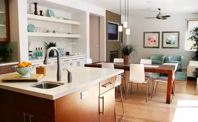 少用大型的酒柜、电视柜等,以使空间的分割单纯化。如果大型家具十分需要,则往角落放置为好。特别是沙发的选用要谨慎,过大的容易浪费空间。