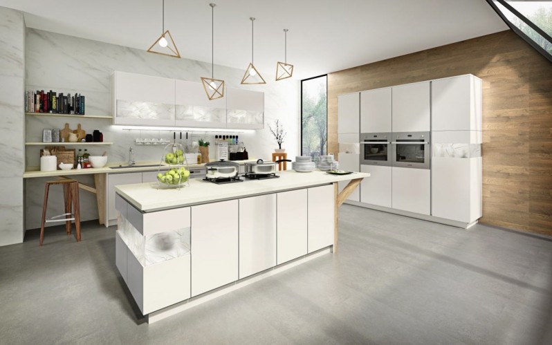 常见的厨房,我们在使用时,一般下面是地柜,上面是吊柜,因为吊柜比较薄,所以吊柜的使用效率就不高。所以我们可以考虑把地柜和吊柜换成高柜,增加储藏空间。
