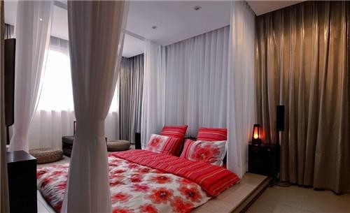 婚房装修虽然主要讲究的是喜庆的气氛,但是如果喜庆过度,效果就不是很好了。可以采用中国红的元素来体现整体上的浪漫幸福气氛。而墙面和地面是居室内面积比较大的区域,所以它们的色彩应该选用与家具色调相近的。