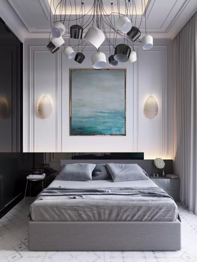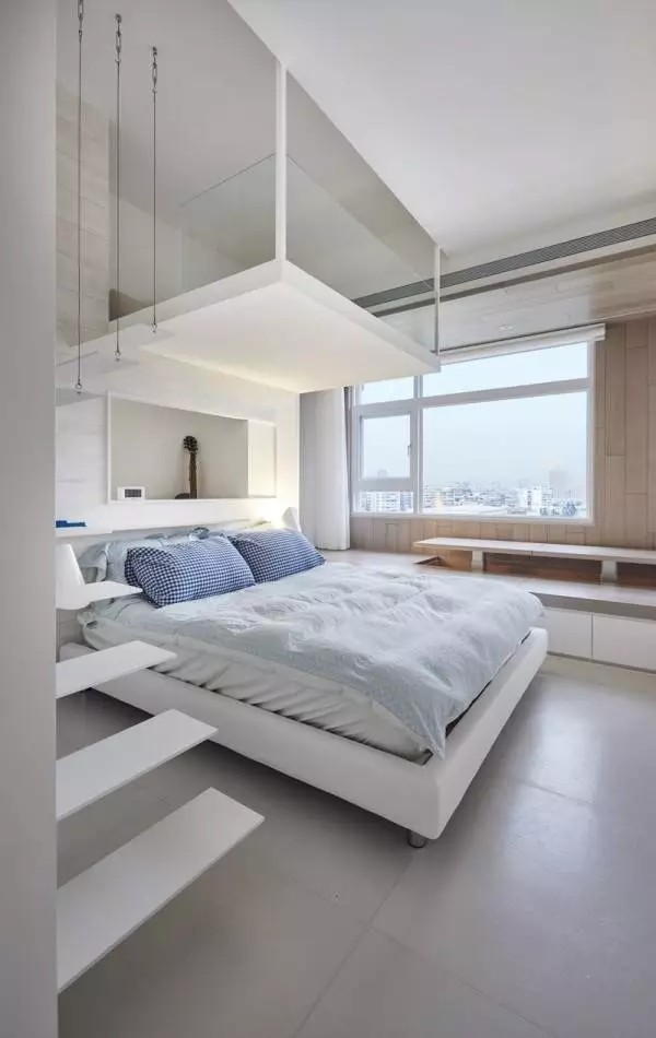 床位的摆设最好离这些悬挂物稍远些,否则容易给人增加压迫感,心情也会因此不安。