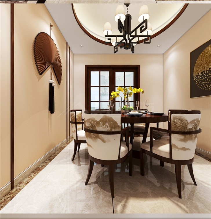 运用家具、挂画、插花等传统中式元素,尤其是禅意的水墨壁画,映衬中式空间的风韵,结合现代质感,勾勒出悠然的中式意韵。