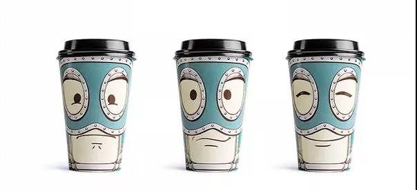 该杯子的制作结合了插画师、平面设计师、美术指导的创意,里外两层设计,外面一层被画成眼眶和嘴型的轮廓,而里层是在白色背景上手绘上了不同的面部表情。里外两层的结合,只需单手把里层扭一扭,杯子就会自己换表情。
