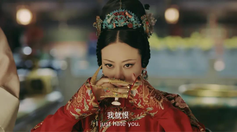 之后随着娴妃的性格黑化,她的穿着开始由素色变为深色,心境也开始不同;寝宫都主要以金色为主,鎏金珐琅瓷瓶、琉璃灯罩、暗花罗帐、万字纹雕花皆是清朝元素的影子