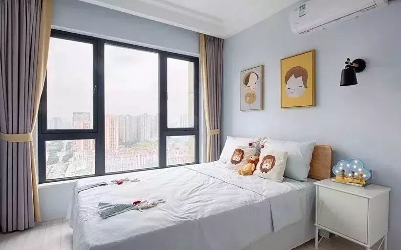 ▲儿童房使用浅木色地板,蓝灰色系结合明黄的点缀,天真可爱。