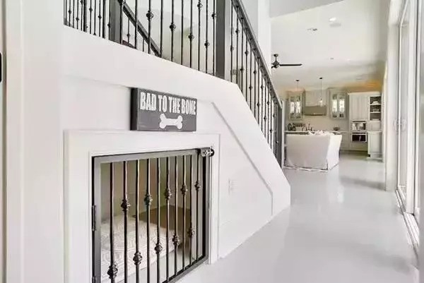 △如果你住的是带楼梯的复式或者半山豪宅,那么占地巨大的楼梯下部空间无疑是作为“宠物之家”最佳省空间地之一。