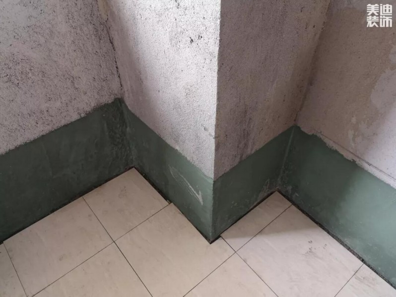 细心的师傅们还仔细检查并确保房间阴阳角呈90度垂直形状。师傅们在施工时,专门对基层有裂缝以及管根留设的凹槽处,用密封材料嵌填并做好了附加防水处理。