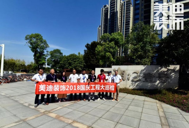 2018年10月3日湖南美迪装饰集团工程部、材料部、营销部、管理中心等相关部门领导带领全体监理和材料专员,对长沙万境蓝山、半山壹号、湘江壹号、北辰三角州等多个工地进行巡检。严格遵循施工标准,从各个角度对在施工地进行严格检查,力求打造美迪装饰完美工地。