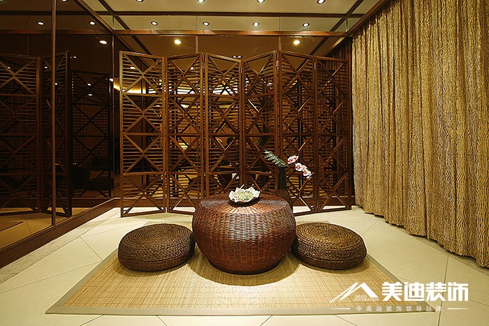 客厅是家居最主要的公共活动空间,不管你是否做人工吊顶,都必须确保空间的高度性,这个高度性是指客厅应是家居中空间净高最大者(楼梯间除外)。这种最高化包括使用了各种视错觉处理。