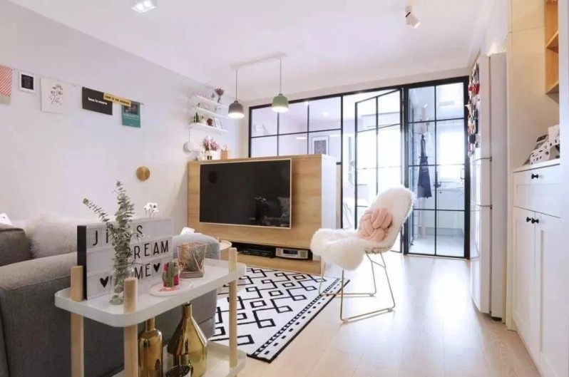 今天这套房子建筑面积47平,使用面积35平, 屋主选择了清爽舒适的北欧装修。