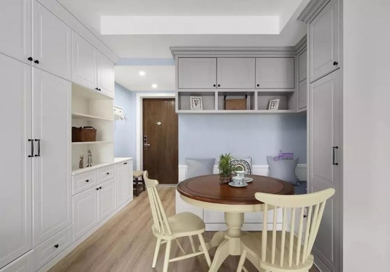 今天给大家介绍的美式非常的“善变”,你可以从中找出北欧风的大方休闲,也有简约系的清新简单,还有一丝地中海般的梦幻和法式浪漫,整个家在清新蓝的主调上,大胆运用多种色彩,将家打造成一个很舒服的空间。