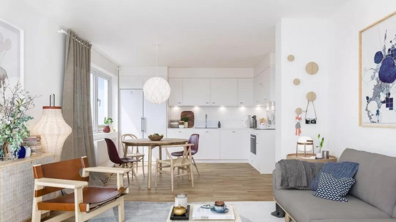 这是一个清新的北欧风格小户型案例,整体上以白色为主调,加入了淡色的木纹,整个空间呈现出一种清新温暖的氛围。