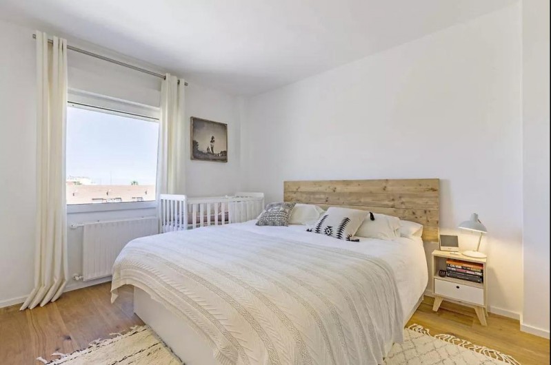 卧室也是白色主调和原木风格的搭配,简单但是很温馨。