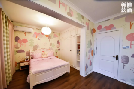 儿童房是改造的重点,屋主想给女儿一个更好的成长空间,设计师将两间房间打通,让儿童房更加明亮,增添了个迷你书房,活动空间更大
