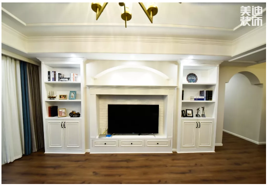 白色的电视背景墙,内嵌造型的设计,对称的布局,彰显空间的大气雅致,几盏壁灯与随意放置的装饰丰富了墙面,也突显质感。