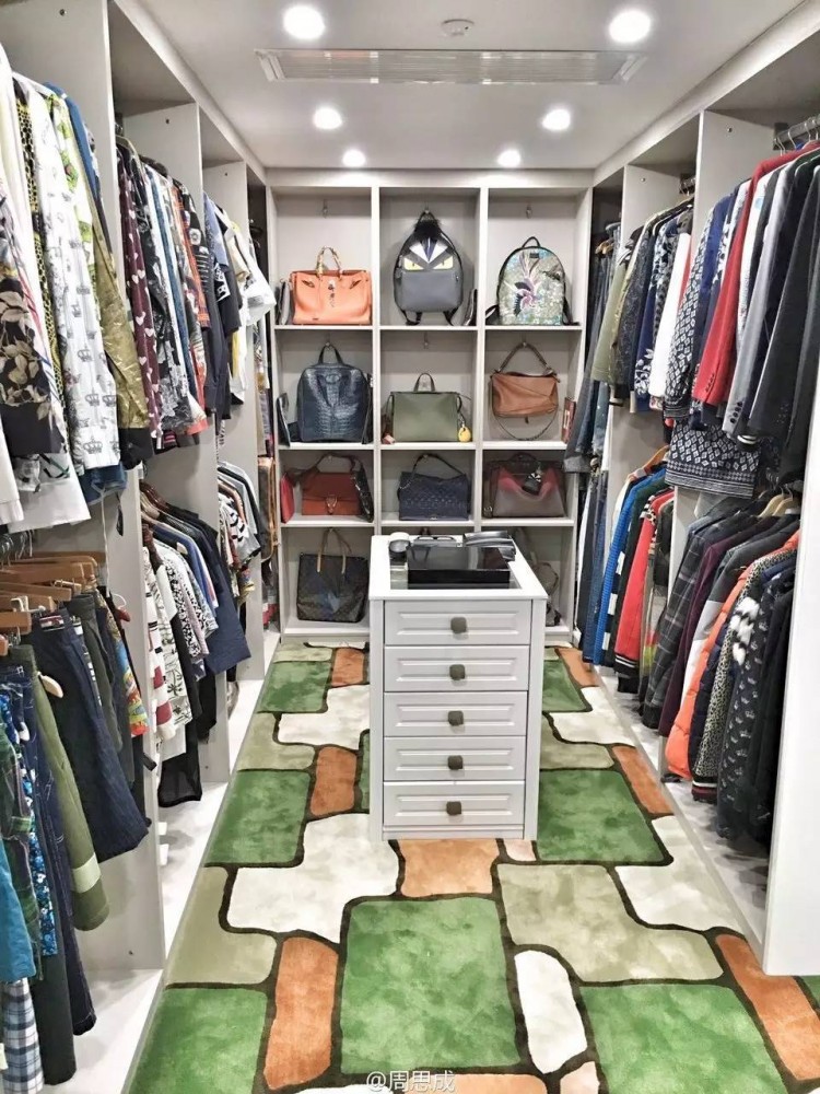 每个人的工作性质和生活方式不一样,我们家最多的空间是用来装衣服,所以新家要有两百平的衣帽间。客厅是一个人的面子,在客厅我定制了一个LV的茶几。这些都是努力赚来的东西,就是我的风水,我觉得某一种跟你气质所契合的东西就是你的风水。打开门就能看到你最在乎的东西和你对于美的欣赏,它装下的东西有你的回忆,也有你的面子。