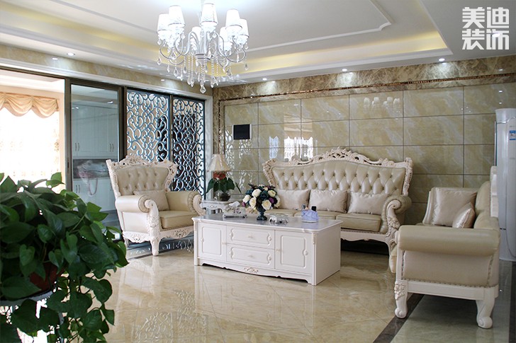高敏设计师打破传统欧式色调的原则,大量运用白色、米色等浅色调设计,加上少量的蓝色、棕色、黄色相互碰撞使整体颜色十分饱满。同时瓷砖上墙设计、欧式风情的壁画、大气流畅的吊顶,使得整个空间的映衬对比都显得相得益彰。