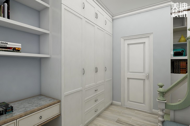 为了给孩子独立的空间,双人床是极佳的,它有并排和上下铺的设计,根据户型来考虑。针对小一点的户型,可以选择上下铺,这样的设计更节省空间。我们还可以利用下铺空间做成收纳柜,这样儿童玩具就不会乱丢了。