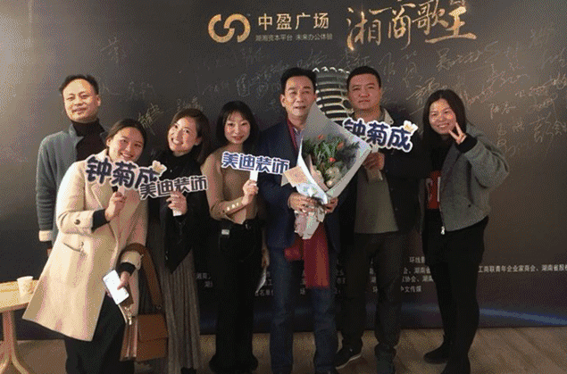 “为企业代言,从心灵发声”,美迪装饰董事长钟菊成作为诚信湘商企业家代表受邀参与了第一季“湘商歌王”争霸赛。12月12日,湘商歌王第一场初赛圆满结束,钟总凭借一首声情并茂的《小城故事》从16位企业家选手中突出重围,取得第三名的耀人成绩,成功挺进总决赛。