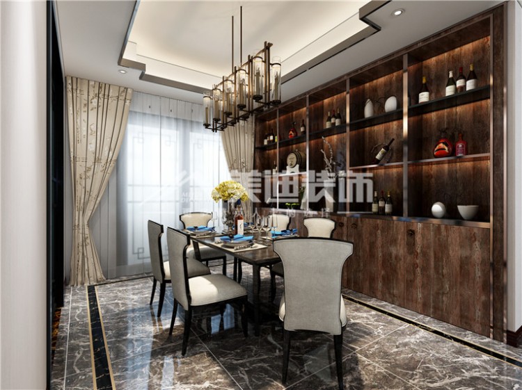 根据审美和经济条件,选有代表性的为重点,就算达到目的。最能体现的是天花与门窗,窗户用实木雕刻不同造型,天花做祥瑞图案,让人感到中式韵味。