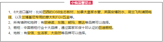 包全房设计 、全房施工、一线主材、进口基材