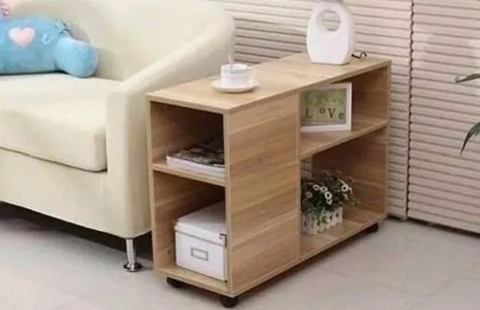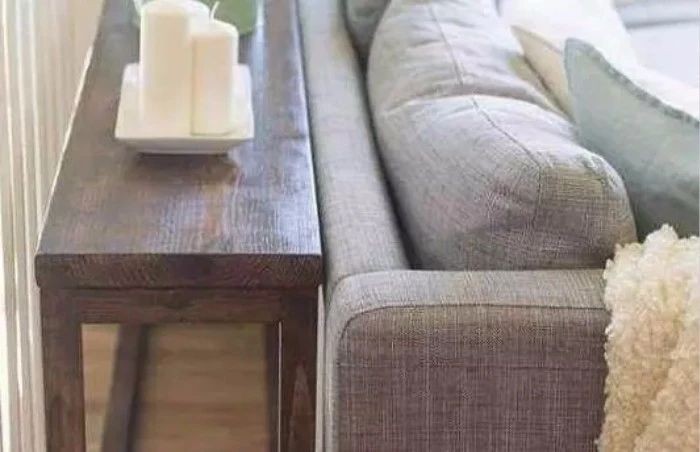 我们还可以在沙发的靠背后面打造一个长度和沙发相当的柜子,平时可以用来放书本,也能用来放装饰品,水杯或是其他东西,也能直接放在上面,就算头靠在沙发上,也不会碰到东西。