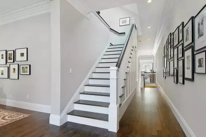 在转角以及楼梯的地方,设计深色系的踢脚线会让你家产生一种视觉的延伸感,层层深入地感觉,增强房间的立体效果。