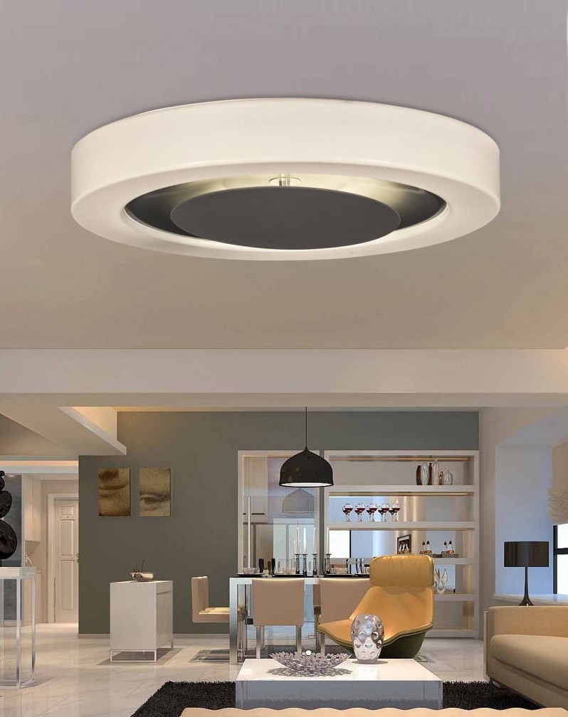 如果你的客厅面积偏小,可以用形状不规则的吸顶灯,增添设计感,也不会显得空间又窄又小;客厅和餐厅是开放式的,可以用高对比色的吸顶灯。如果你的客厅既高又大,就可以根据自己的喜好以及对光线的要求来挑选了。