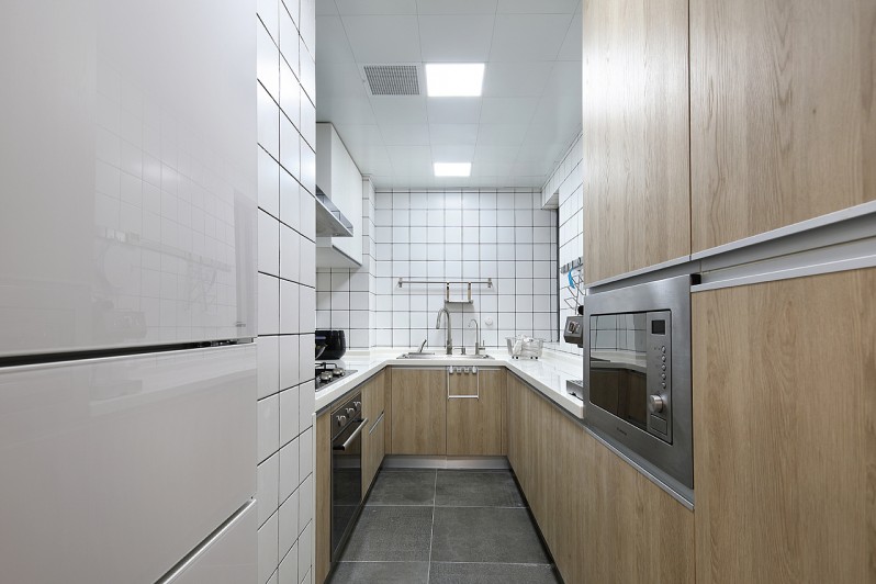 狭长的厨房空间,完美的突出了日式风格的主题,不浪费每一寸地方。厨房的设计,让整个空间都变的通透又宽敞起来。