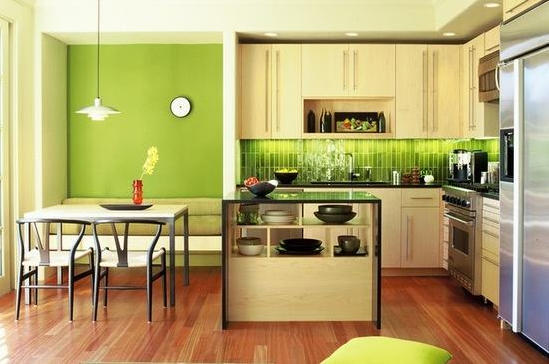 以木色和白色为主的餐厅空间中,可以用彩色给空间增添一点夺目的亮点。
